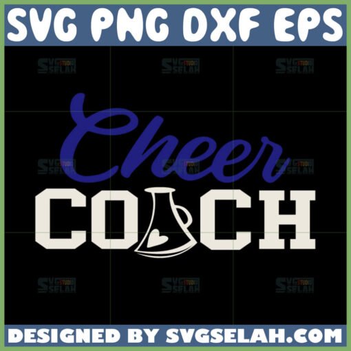 - Versatile Color Palette: The design features a vibrant blue for ‘Cheer’ (often associated with loyalty and trust) and a clean, crisp white/cream for ‘Coach’ and the megaphone (representing clarity and purity). Set against a black background, this high-contrast palette ensures the design pops beautifully on any product.