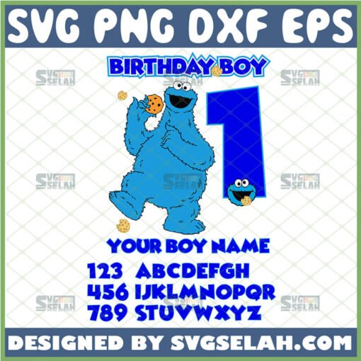 Cookie Monster 1st Birthday Boy SVG PNG DXF EPS – Personalized Sesame Street Party Digital Files