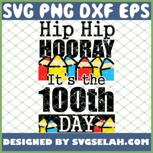 - Typography: Features a mix of distressed, chunky lettering for emphasis on “HOORAY”, “100th”, and “DAY”, giving it a popular, slightly rustic, or handmade craft aesthetic. The top line uses a classic, sturdy sans-serif font.