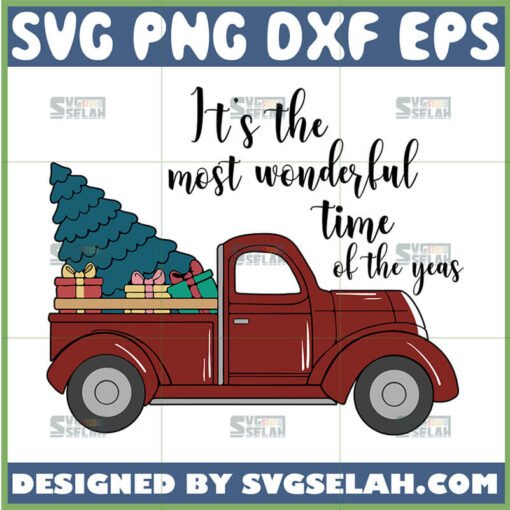 Vintage Red Truck Christmas SVG PNG DXF EPS – It’s the Most Wonderful Time of the Yeas Digital Design