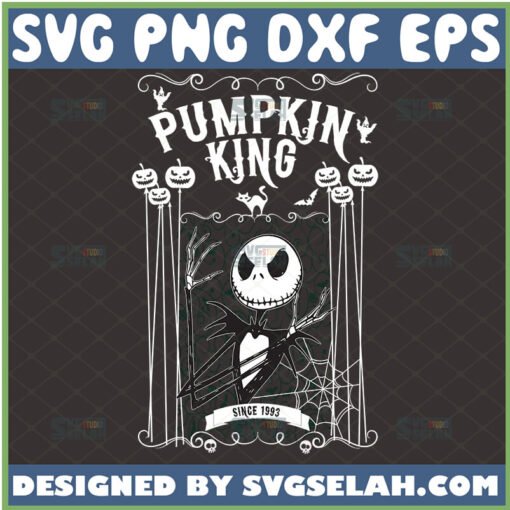 A: The Pumpkin King is Jack Skellington, the beloved main character of Disney’s The Nightmare Before Christmas. He holds this title because he is the revered master of ceremonies and the most frightening resident of Halloween Town, responsible for orchestrating their annual Halloween celebration. Our Jack Skellington SVG design celebrates this iconic role with the prominent “Pumpkin King” text.
