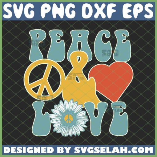 - Groovy Typography: The words “PEACE” and “LOVE” are rendered in a distinct, wavy, retro font, instantly transporting you to the free-spirited decades of the 1960s and 1970s.